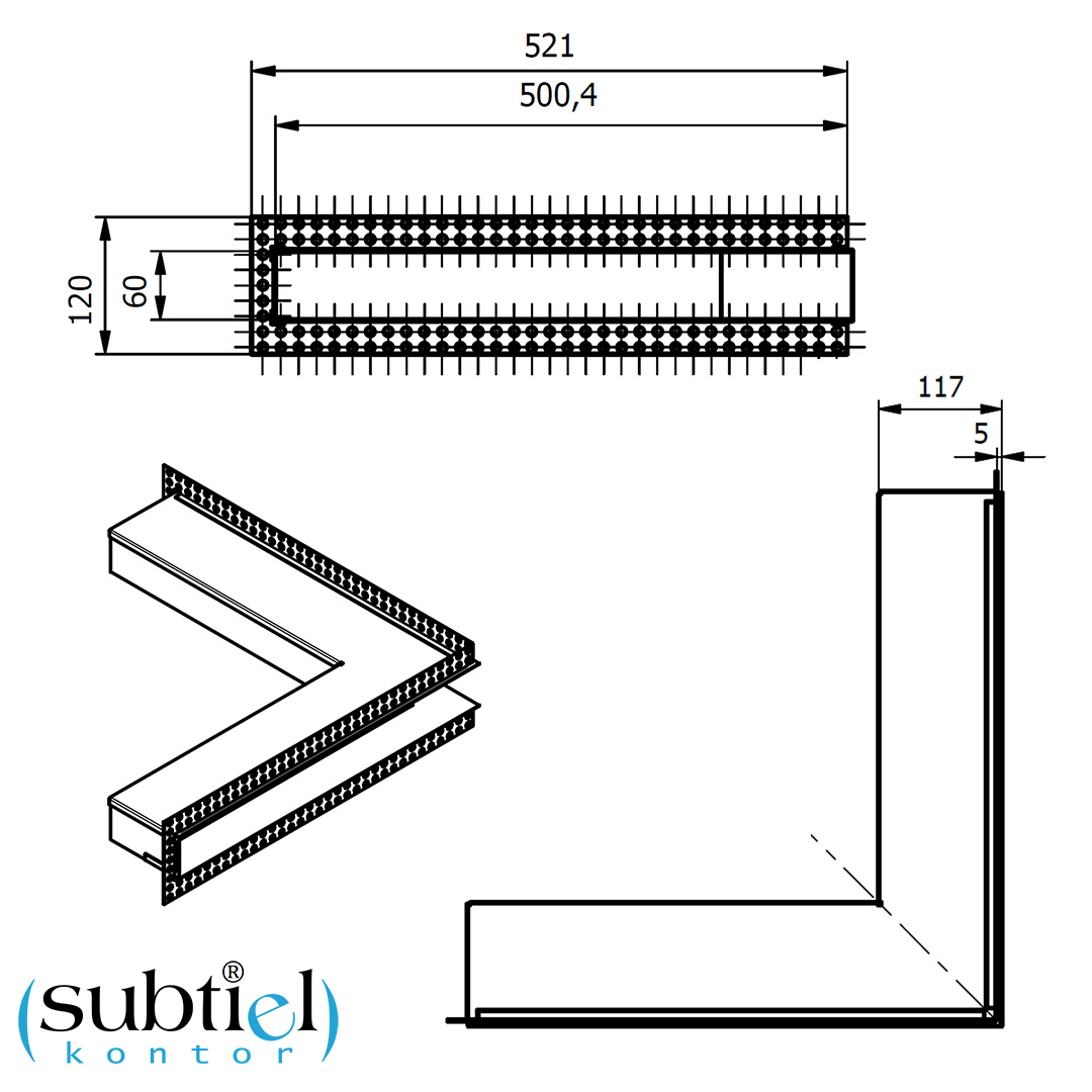 Downloads zu 1095-OAD Open Air DOT putzbündige Ventilationsleiste ECKE 500 x 500 x 60 mm, weiß